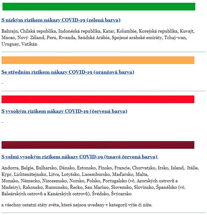 Jaké země patří do jednotlivých kategorií od 14. února 2022?