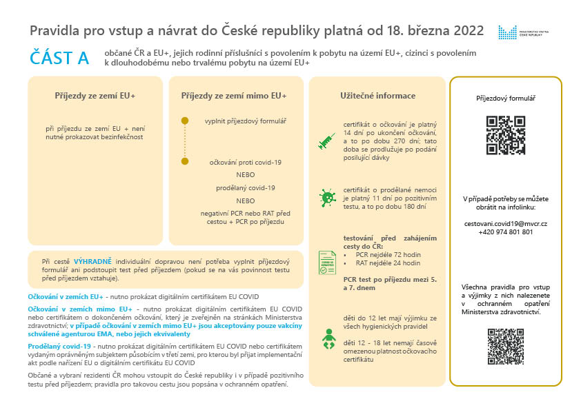 Epidemie koronaviru v Česku i dalších evropských zemích v posledních týdnech výrazně polevila. Podle aktualizovaného opatření zveřejněného na webu ministerstva zdravotnictví tak už lidé při příjezdu ze států EU a dalších osmi zemí nemusejí vyplňovat příjezdový formulář. Povinné není ani potvrzení o testu, očkování nebo prodělané nemoci. Pro příjezd z ostatních států mimo EU, což se týká i lidí, kteří v takových zemích v posledních 14 dnech pobývali více než 12 hodin, pravidla zůstávají beze změny.