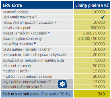 ① Produkt Sbaleno Na maximum vč. balíčku ERV Extra - pojistné ve výši 1 669 Kč/osoba